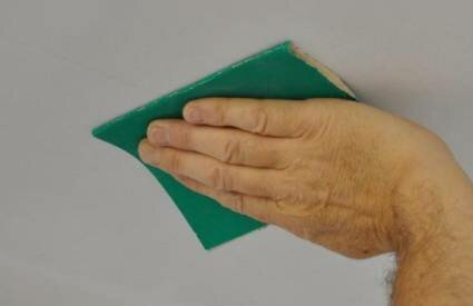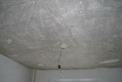 Как только потолок будет размыт, вы сразу увидите все скрытые ранее недостатки: трещины, сколы, неровности. Углубляем трещины шпателем, потом наносим туда грунтовку и мажем базовую шпатлевку. Ни одна трещина не должна быть обделена вашим вниманием, даже самая маленькая, в противном случае конечный результат ремонта вас не обрадует, все будет выглядеть небрежно. Для заделки используем акриловый герметик. Дожидаемся высыхания, берем наждачную бумагу, шкурим потолок и снова грунтуем. Далее идет шпаклевка, потом снова ошкуривание и грунтовка.