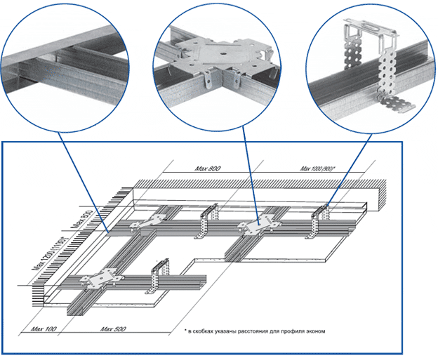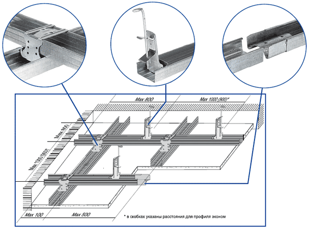Расход материала дан без учета возможных потерь при монтаже подвесного потолка из гипсокартона (потолка ГКЛ).
