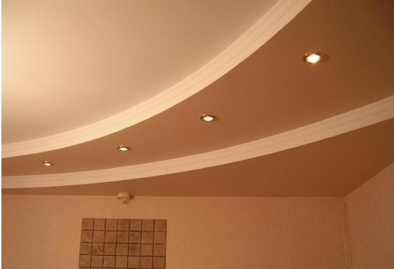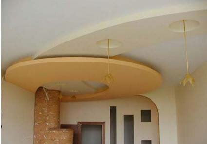 2.Любая форма, если, конечно, правильно установить потолок, будет выглядеть красиво. Обычный вариант – гладкое полотно, без порогов и других сложных элементов. Листы из гипсокартона достаточно эластичные , что позволяет оборудовать закругленный выступ по всему периметру потолка, сделать более лучшие конструкции. Без опытным людям, лучше не экспериментировать с витиеватыми формами, чтобы не испортить материал.