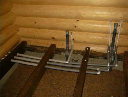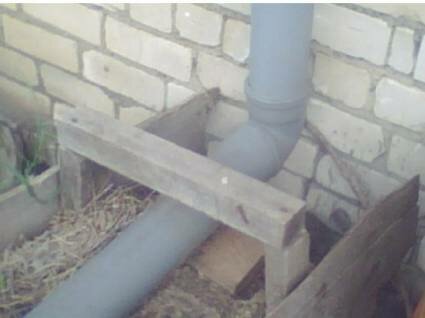 4. Из канализационной трубы сначала будет вытекать вода, при помощи тройников сделайте специальный отвод и рядом приготовьте тазик.