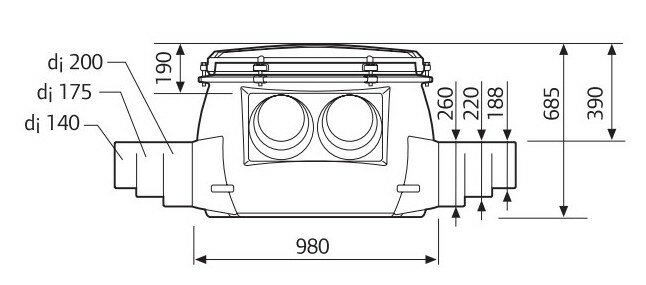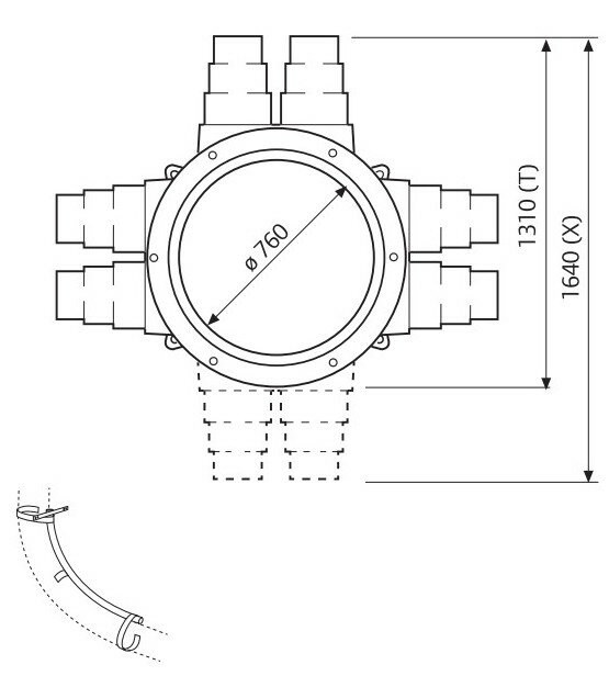Теплоизолированный колодец, данная камера позволяет подключать в ней ответвления. Стенки колодца выполнены методом ротационного литья из полиэтилена, внутренняя поверхность покрыта слоем теплоизоляционного пенополиэтилена. Конструкция камеры является водонепроницаемой. Конструкция позволяет подсоединять теплоизолированные трубы любого pазмеpа. Вес камер составляет 50 или 52 кг. Патрубки срезают под pазмеp устанавливаемых труб. Кpышка крепится шестью болтами из нержавеющей стали диаметром 10 мм.