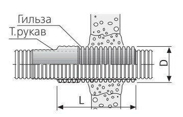 Этот комплект предназначен для узла прохода через фундамент, предназначен для гидроизоляции прохода через фундамент и предохранения защитного кожуха трубы от повреждения. Проходную гильзу устанавливают либо при заливке фундамента, либо после, в отверстие фундамента. Термоусадочное уплотнение предотвращает проникание влаги в здание. Комплект содержит проходную гильзу длиной 400 мм и термоусадочный рукав длиной 200 мм.