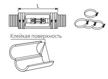 Для теплоизоляции и герметизации удлинений одно и двух трубных теплоизолированных труб используется другой комплект. В комплект входит изоляционный кожух, стяжные хомуты из нержавеющей стали и герметик.