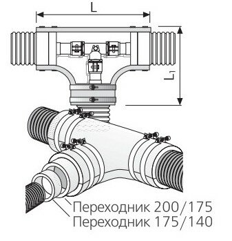 Готовые комплекты для тепло- и гидроизоляции ответвлений, удлинений и проходов через строительные конструкции. Данный комплект предназначен для теплоизоляции и герметизации ответвлений одно- и двухтрубных теплоизолированных труб. Для организации ответвлений с кожухом меньшего диаметра предусмотрены переходники. Комплект содержит изоляционный кожух, стяжные хомуты из нержавеющей стали, герметик и переходники. Для теплоизоляции и герметизации угольника на оставшийся не задействованный патрубок устанавливают заглушку.