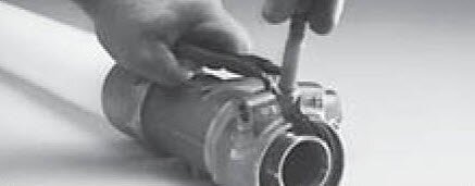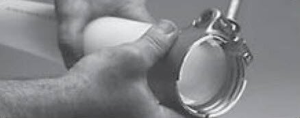 3. Установите штуцер в трубу до упора и пpи необходимости воспользуйтесь pезиновым молотком.