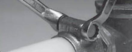 4. Соедините гайку с ниппелем и затяните их с помощью гаечного ключа, гайку затяните на 1,5–2 оборота, чтобы запрессовать стыкующиеся конические концы.