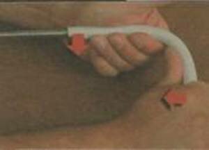 В случае, когда требуется сделать изгиб металлопластиковой трубы на довольно незначительном расстоянии от края, то на приспособление для гибки надо привязать бечевку либо провод.