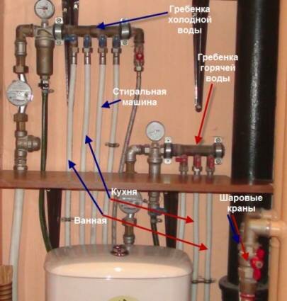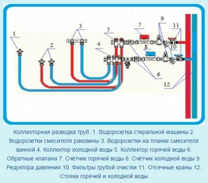 1) Коллекторная схема сантехнической разводки (каждая труба подключается отдельно к приборам)