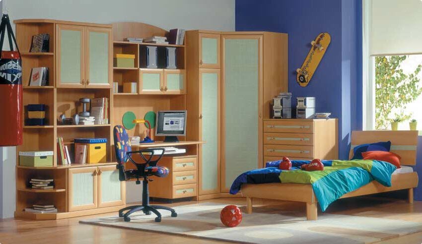 При выборе мебели принцип безопасности также актуален. Если ребенок школьного возраста, то обязательно выделите ему зоны для отдыха, игр с друзьями и учебы. В зону для приема гостей можно поставить небольшие диваны и кресла. Зону для уроков необходимо оборудовать удобным столом с лампой и стулом. Есть специальные требования к высоте этих предметов, но это уже отдельная тема. Вам понадобится шкаф, где будут храниться вещи, игрушки.