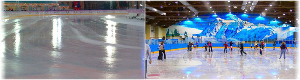 Ледовые катки делятся на массовые и спортивные, по виду льда — на искусственные и естественные. Технология легких металлоконструкций позволяет возводить сооружения любых форм и размеров по желанию заказчика. Для любительского фигурного катания могут использоваться катки круглой и прямоугольной формы, не существует ограничений на размер. Надежный металлический каркас в сочетании с тентовыми укрытиями позволяют функционировать сооружениям при любой погоде и в любое время года, при необходимости размеры могут быть увеличены для размещения трибун и раздевалок.