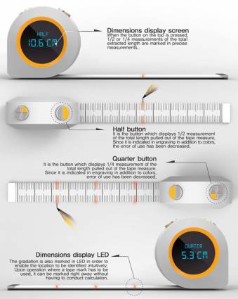 По какой-то необъяснимой причине, измерения для вещей (одежда, столы и т.д.) в конечном итоге мерится примерно в квартале около или половиной дюймов. Они редко округляются до ближайшего целого числа, поэтому точность измерения имеет первостепенное значение. Измерительная рулетка Half & Quarter измеряет с помощью интуитивно понятной светодиодной полосы в интерфейсе ленты в см.