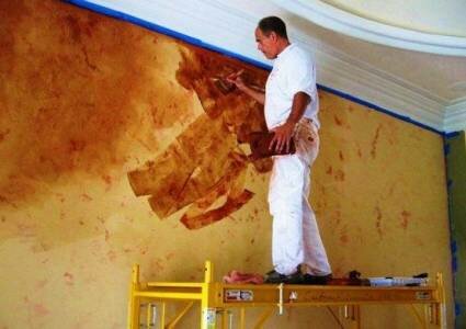 «Венецианка» наносится в несколько слоев. Количество слоев может варьироваться от 3 до 10 в зависимости от дизайнерских представлений насыщенности цвета и глубины фактуры.