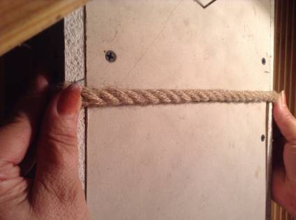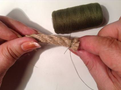 2. Нарезаем по этой мерке куски веревки. Чтобы она не расплеталась, с каждого края обматываем ниткой в одной цветовой гамме с веревкой.