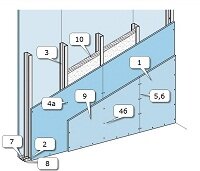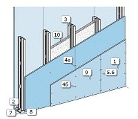 Перегородка из гипсокартона с двухслойной обшивкой на металлическом каркасе.