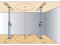 При помощи отвеса перенести разметку на стены и потолок. Отметить расположение проемов.