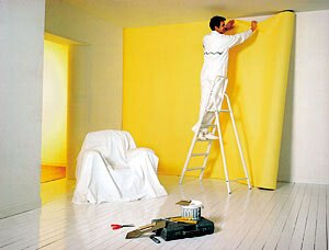 Отделывают стену тканью бесшовным способом, при котором рулон, обычно имеющий ширину, совпадающую с высотой потолка, разматывают по горизонтали вдоль стены. Крепление материи осуществляют не по всей плоскости, а лишь по краям. Единственный шов располагают обычно в самом темном углу. А поскольку ткань почти по всей площади не касается стены, то и подготовка поверхности, включая устранение трещин, отслаивающейся краски, неровностей, следов протечек и т. д., почти не требуется. Нужно лишь выровнять места крепления полотна к стене.