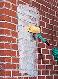 На такое плотное и малопористое основание, как кирпич, следует нанести грунтовку с высокими адгезивными свойствами