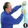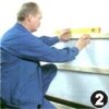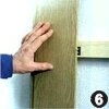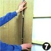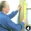 4. Используя уровень, установите панель вертикально для разметки крепления скобы. Укладка панелей начинается от угла помещения. Первая панель укладывается гребнем к стене. Приложите первую панель и выровняйте ее вертикально с помощью уровня.