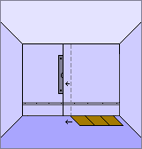 После того, как найдено оптимальное расположение "точки центра", необходимо на стене провести в этой точке строго вертикальную линию от пола до потолка. Это можно сделать с помощью уровня (ватерпаса) или отвеса.