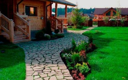 Вы можете сделать дорожки на даче или в саду своими силами, причем использовать можно самые различные материалы. Здесь главное, чтобы дорожки вписались в окружающую обстановку и понравились лично вам. Что касается дизайна, то либо вы его придумываете сами, либо находите готовый вариант в журналах или интернете. Естественно, есть свои нюансы, которые нужно учитывать, так как некоторые строительные материалы придется предварительно обработать. К примеру, древесина покрывается специальным составом, в противном случае дорожка очень быстро придет в негодность.Камень.