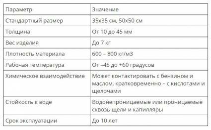 В состав такого покрытия входит смесь каучуковой крошки, либо размельченной на мелкие частицы переработанные автомобильные шины с полиуретановым клеем, запрессованные в формы. Такие плиты морозоустойчивы, не боятся прямых солнечных лучей, нескользящая поверхность, устойчивы к воздействию растворителей механических повреждений водонепроницаемы. Несмотря на такую выносливость материала, он вполне безопасен - не выделяет никаких токсических веществ, без опасений по нему можно ходить босиком.