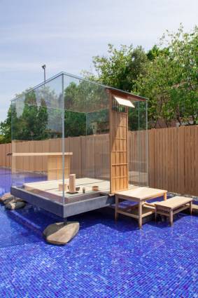 В этом году на биеннале традиционные японские чайные церемонии были в стеклянном чайном домике по проекту японского художника Хироши Сугимото.