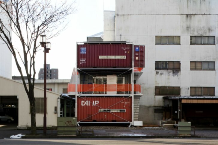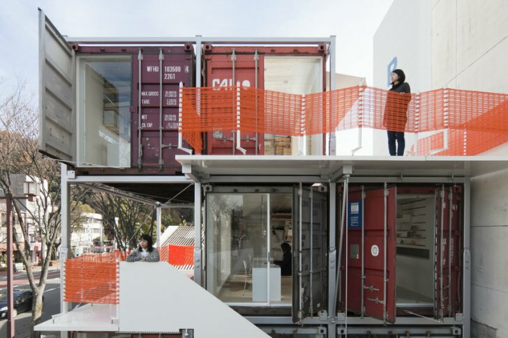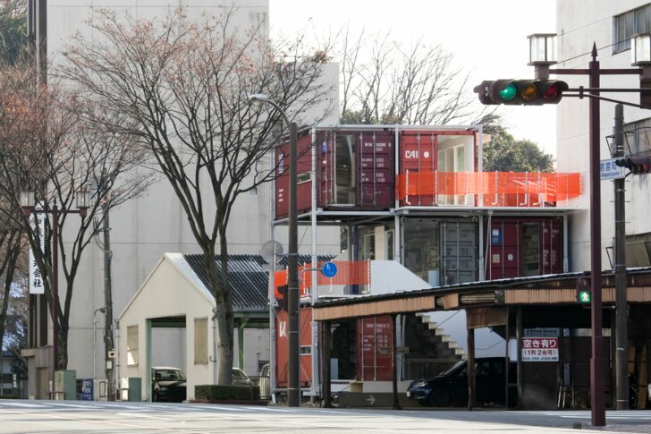 Расположенный в Гифу, Япония, временное здание предоставляет место для офиса фирмам, наряду с жилой площади.