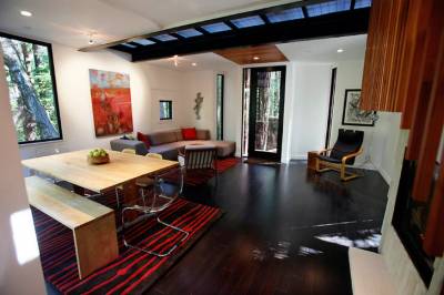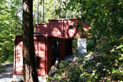 Дом из шести переработанных контейнеров для перевозок грузов находится в горах покрытым лесом за пределами города Санта-Крус, штат Калифорния.