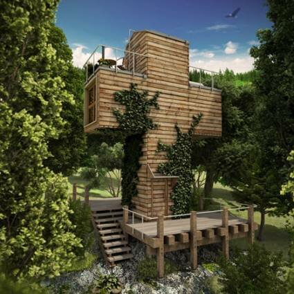 Дом будет из двух морских контейнеров - один размещенный вертикально, а другой сбалансирован по горизонтали, дом будет в четыре этажа внутри крестообразной структуры. Внешний вид здания будет обшит древесиной, а крыша будет покрыта металопрофилем. Солнечные батареи могут обеспечить отопление, в то время как дождевая вода будет собираться для повторного использования и компостирования туалета.