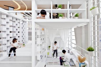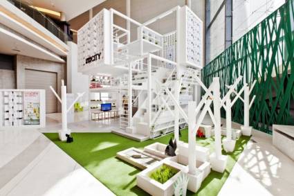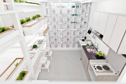Большая часть мебели в течение жизни в городе служит двойной цели, например с лестницей удвоения в качестве полок, в то время как секция стенки также складывается в рабочий стол. Схема имеет несколько внутренних стен, с сетчатым полом и открытой планировки помогает придать чувство больше места, чем на самом деле доступно.