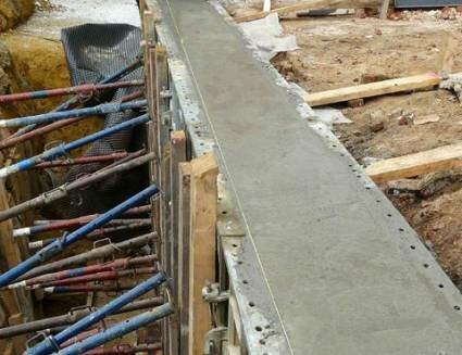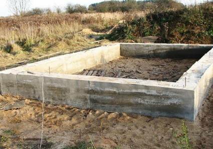 Определяем размеры фундамента. Это зависит от величины строения и от характеристик почвы. Средняя глубина траншеи - 70-100 см, а ширина 40-50 см. При необходимости ширина увеличивается. Делаем разметку и начинаем копать. После того, как траншея будет выкопана, на дно засыпаем песок и щебень. Все это хорошенько утрамбовывается. Настало время заняться опалубкой. Есть несколько способов достать опалубку: купить или сделать ее самостоятельно. Если у вас не опыта строительства подобных конструкций, то лучше купить. Решили сделать сами? Тогда помните о том, что все размеры здесь должны быть выдержаны идеально, никаких неточностей быть не может. Опалубка установлена и можно начинать заливать фундамент. Прежде чем заливать стоит определиться, надо ли армировать конструкцию. При необходимости добавляем армирующую сетку или металлические прутья.