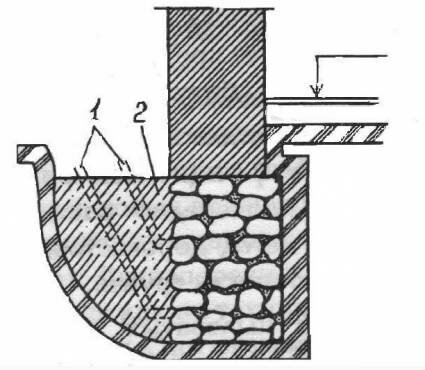 Нужно запомнить, что укладка происходит участками по 2 метра. До начала работ следует расставить маячки. Основание укрепляется подкосами. После того как вы подготовили фундамент, делается опалубка нашей ямы.