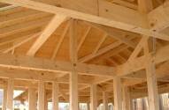 Это дом состоит из деревянного каркаса и крыши, которые были предварительно сделаны на заводе, а затем построили на месте.