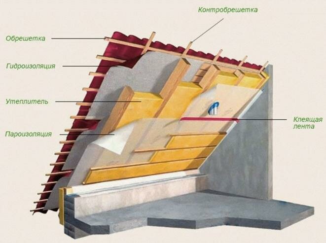 Теплоизоляция и обрешетка двухскатной кровли Теплоизоляция и обрешетка - вот на что стоит обратить пристальное внимание при сооружении двухскатной крыши. Теплоизоляционный материал нужен для того, чтобы не выпускать тепло в помещении наружу. Как правило, в качестве утеплителя используется всевозможные комбинированные материалы, имеющие в своей основе минеральную вату. Важно отметить, что теплоизоляция делается вместе с укладкой гидро- и пароизоляционного материала.