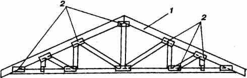 Рис. 2 Треугольная ферма с соединениями на металлических зубчатых (просечных) пластинах: