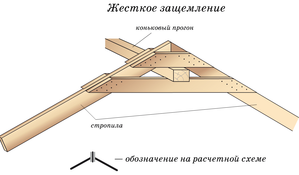 рис. 20.3. Узел опирания стропил на прогон. Жесткое защемление