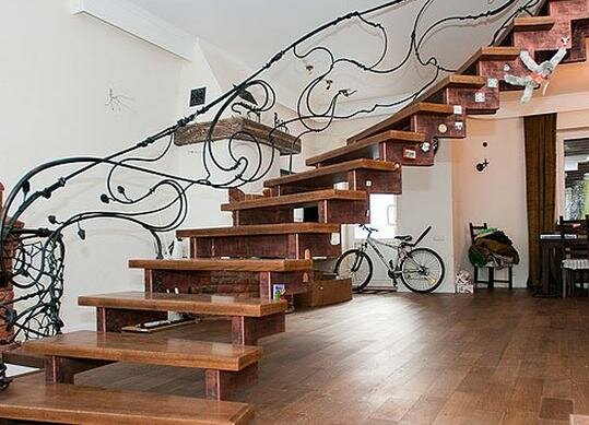 Что касается винтовых лестниц, то они занимают мало места, однако достаточно удобными в использовании их назвать никак нельзя. Во время постройки такой лестницы используется стойка посередине, куда и фиксируются ступени. Обычно винтовые лестницы служат в декоративных целях или же в качестве вспомогательной лестницы. Имейте в виду, что лестничные перила должны выдерживать большую нагрузку, ведь вам придется опираться на них. При проектировании лестницы на мансарду обратите внимание на безопасность.