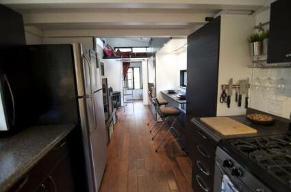 Строя свой крошечный дом на колесах, Моррисон смогли обойти многие строительные нормы и правила, которые обычно стоят на пути строительства крошечного дома. Хотя меры дома шириной всего 2,5 метра, его высокие наклонные потолки и белые стены дает узкому дому иллюзию пространства. Пара также разместили полностью оборудованную кухню и ванную комнату на противоположных концах дома, чтобы максимизировать всю ширину прицепа камбуз.