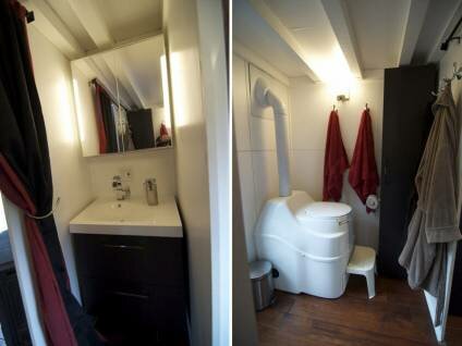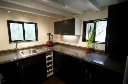 Просторная кухня оснащена полноразмерной газовой плитой и духовкой, холодильником, винным шкафом. В ванной комнате имеется большой компостный туалет. По словам Габриэллы они решили построить маленький, а не большой дом, зная, что у них всегда будет место на этой планете, и они не обязаны, платит за коммунальные услуги.