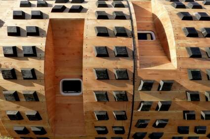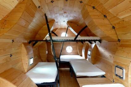 Эти приюты от сетки выступают в качестве гибридных структур что-то между архитектурой и природой, в нем разместиться до девяти человек. Цилиндрический объем построен вокруг стальной рамы и окутан лесом. Интерьер имеет три двуспальные кровати и три односпальные кровати, в то время как древовидные внешние особенности шипы напоминают трамбовки колеса.