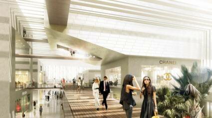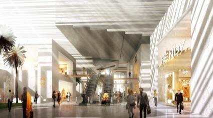 Эти торговые "посольства" будут сгруппированы вдоль оси аллеи в манере, напоминающей традиционной европейского. В то же время, крыши магазинов, будут использованы в качестве ресторанов, и будут соединены друг с другом мостиками. Это сделано для того, чтобы создать уникальные, многоуровневые пешеходные зоны.