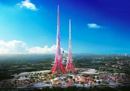 Башни, выполненные в сотрудничестве между Chetwood Architects и Huayan Group, как ожидается, будет построен на 47 га. Ожидается, что они будут достигать высоты в 1 км, догоняя Adrian Smith+ Gordon Gill Architecture спроектированной Kingdom Tower в Джидде; они были бы самым высоким парой башен в мире.