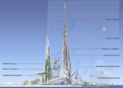 Вдохновленный символ китайской Феникс, который сочетает в себе мужское и женское начало в идеальном равновесии, архитекторы разработали две взаимозависимые башни. «Мужской» одна (Фенг) кормит "женщина" (Хуан) с возобновляемыми источниками энергии и вместе они действуют как маяк устойчивости в этом районе.