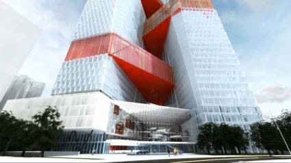 Слегка поворачивается, здания может захватить господствующие ветра и для проветривания. Фасад включают модульную систему затенения от солнца. Все развитие планируется сократить выбросы углекислого газа на 40 процентов по сравнению с типичной офисной башни.