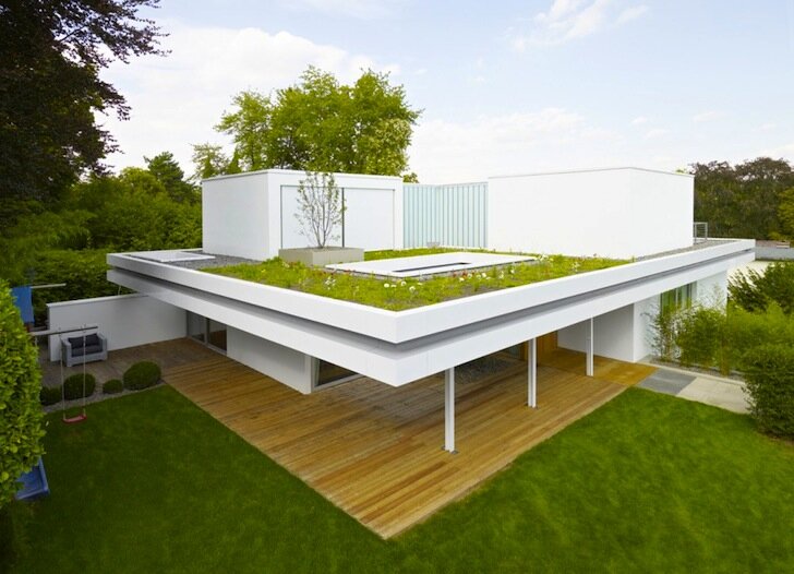 3 комнаты + 3 дерево и луг украсит крышу дома Дом, который имеет 3 комнаты, 3 дерево и луг на крыше был заказан для семьи из четырех человек, чтобы расширить Немецкое бунгало построенное в 1960-х годов. Расширение  дома было ограничено. В ответ на эти вызовы, построили 3 коробки бокса с высоким остеклением, прозрачные коридора на крыше, и окружили их со двора, мини-лугом, и деревьями! Cкладывающая Micro кабина