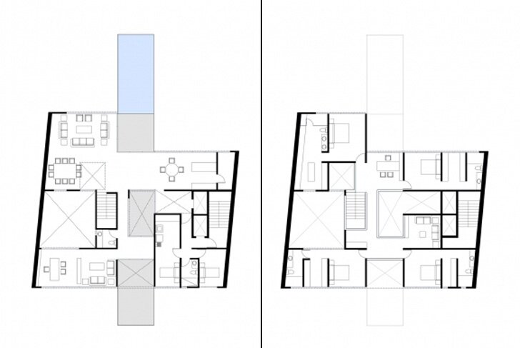 Этот 20-этажный, площадью 12223 квадратных метров элитной жилой башни раздвигает границы традиционной жилой башни путем включения больших внешних пространств.