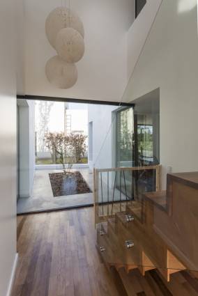 Эти обстоятельства определили выбор места установки дома. Напротив, задний фасад дома с видом на север был открыт по максимуму, для дневного света и видом на поле для гольфа. Неправильная форма участка привело к необходимости разработки способы использования своего преимущества. Это привело к решению нарушения сопровождать морфологию местности, и генерировать разные взгляды вдоль его обращении стены. Стоит отметить, что проект является жительством семьи архитектора, плюс не было ни одного бюджетного ограничения, свободы, которые были приняты в своих интересах.