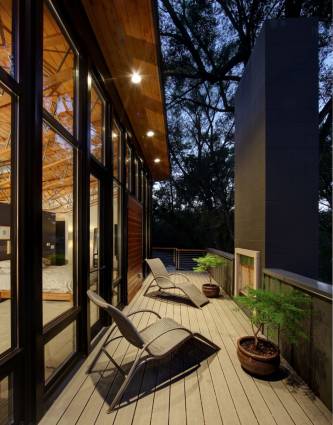Один опыт в хореографии через последовательность частных дворов и внутренних зон. Серия участка стен с различными уровнями прозрачности организовывает пути, связывающих внешние номера и обеспечивает доступ на протяжении всего планового. Геометрия выдавливается в основной форме кухни на первом этаже и мастер ванны на втором этаже. На первом этаже, деревянный пол превращается в поверхность потолка. Сидя над соседними домами, новый мастер-люкс с собственной террасой во внутреннем дворике.