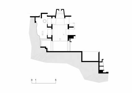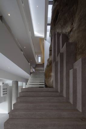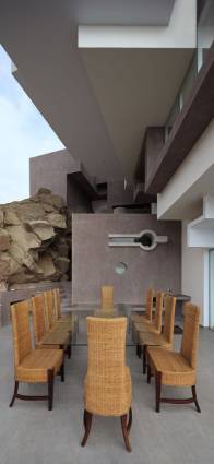 Интимные участки размещаются в объеме двух уровнях, что "плавает" над террасой. Этот объем генерирует хороший архитектурный диалог с рок стороны Севера и Юга из партии, с объемной композиции, которые могут быть интерпретированы как геометризации природа места.