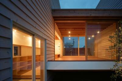 Чтобы связать природу и строительство, фасад дома и общественное пространство для семьи облицевали натуральным деревом.